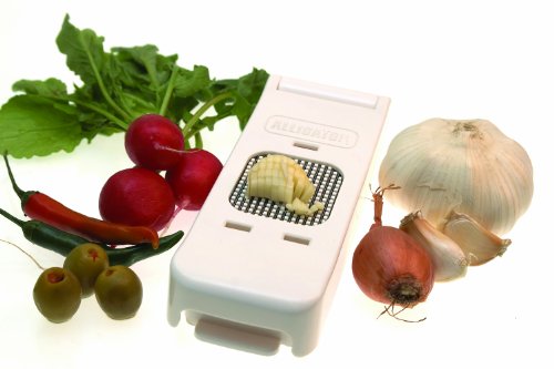 With two quick motions, the razor-sharp grid on this tool produces perfect dice cuts. The Alligator Dicer works in seconds ¿ a great way to chop onions without the onion tears! The Alligator dices potatoes, celery, carrots, cucumbers and bell peppers as well as apples and other hard fruits ¿ and more. Made of sturdy plastic with a stainless-steel dicing grid, the dicer has its own cleaning device to clean food bits from the grid. It is also dishwasher safe. Perfect for shallots, garlic or other hard veggies you would like to dice!You will not be disappointed with