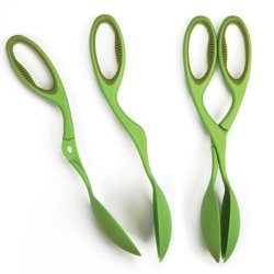 This originally designed kitchen tool offers the dual capability of being able to function as a conventional salad scissor and individual serving utensils due to the come-apart pivot hinge. The handle features soft-grip rubber for added comfort and improved ergonomics.You will not be disappointed with