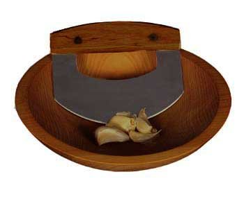"Buy Wood Chopping Bowl 9" & Mezzaluna Knife Set - Dark Finish" Overview